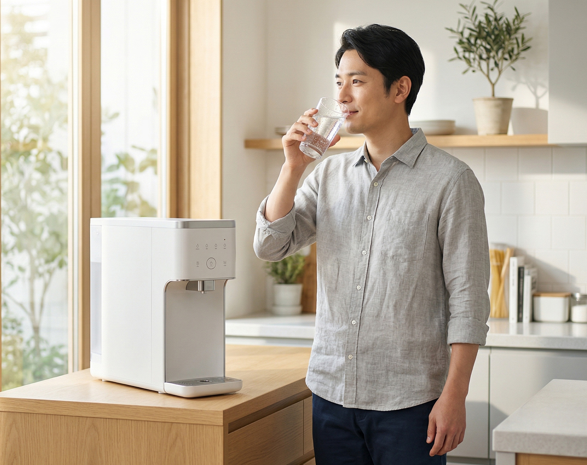 水道直結型で解約金・撤去費用ゼロ。業界最小クラスの幅26cmスリムボディ